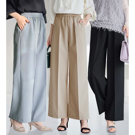 ・ほどよくゆとりのあるシルエットで脚のラインを拾いにくく、体型をカバーしてスッキリ見せ。