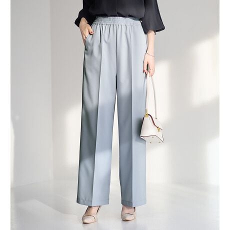 ・ほどよくゆとりのあるシルエットで脚のラインを拾いにくく、体型をカバーしてスッキリ見せ。