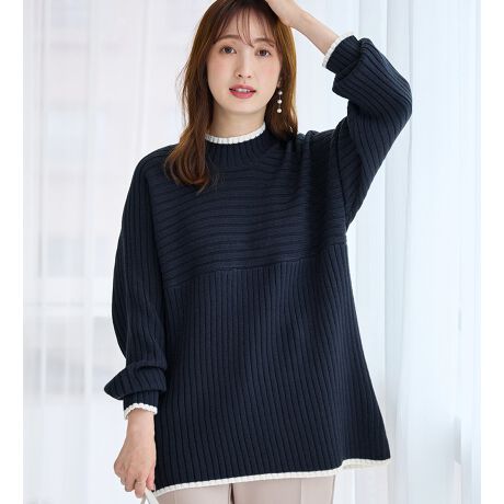 ・リブの編柄を胸下で切り替えたデザインがポイント。