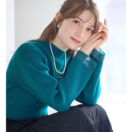 ・袖先のシアー素材は程よく光沢感があり、こなれ感UP!
