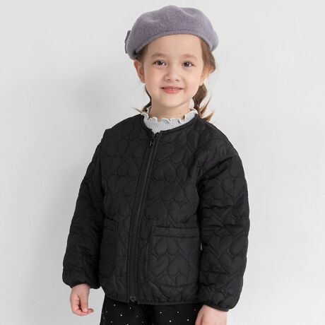 ピンク色を2歳の孫に購入しましが、写真よりも可愛いピンク色でした。布は思っていたよりも薄いので、初秋と春向きという感じです。サイズは来年も着られるように100にしたのですが、中にカーディガンを着ても余裕ですし、袖は一折して着ています。ハートのキルトがとてもあいらしく、気に入っています。