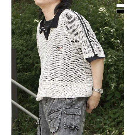 ILL’S(イルズ)ワンポイント サイドライン スポーツ メッシュ スキッパーニット