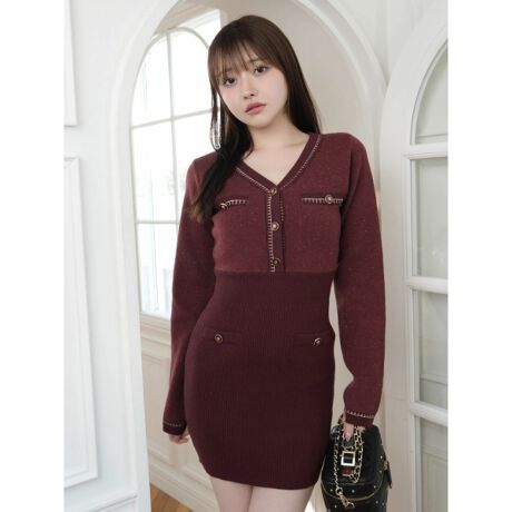 ・上身頃にはラメ糸をMIXしていて動くたびにきらめきがプラスされ華やかな印象に。