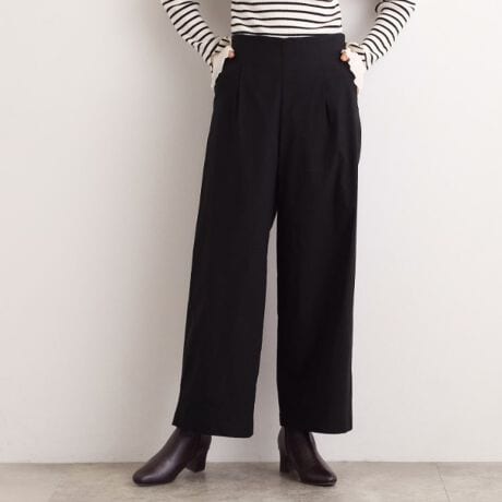 非常に伸縮性の高い、ハイパーストレッチ素材を使用したワイドパンツ。
