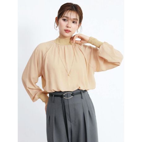 シアー素材とニットをドッキングした表情豊かなトップス。