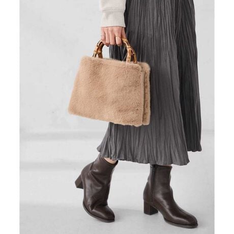 冬のスタイリングのポイントになるフェイクファー素材を使用したバッグ。