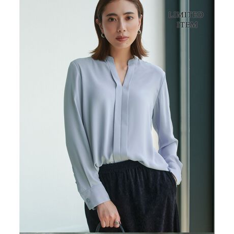 一枚でも着映えるキーネック型ブラウス