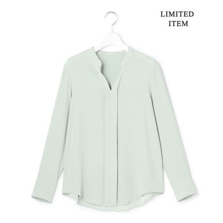 一枚でも着映えるキーネック型ブラウス