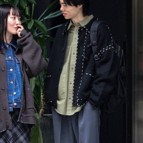 #ユニセックス #ハンドステッチ #ニットジャケット #大人カジュアル #リラックスシルエット #秋冬コーデ #ニットアウター #着回し力抜群