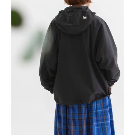 秋や春に活躍する軽やかに羽織れるコットンナイロンのマウンテンパーカ。大きなフロントポケットは脇からも入れられる2重構造で便利。袖口はゴム仕様で楽に捲れます。フードの後ろにはさりげないスワン刺繍入り。後ろが少し長めの前後差デザインでバランスよく着て頂けます。
