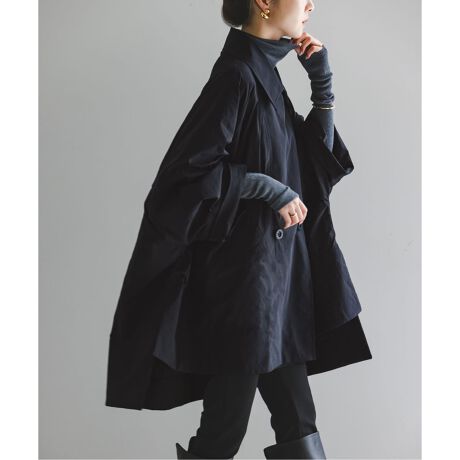 軽さをKEEPしつつ厚手のニットも着込めるアウター。ポンチョのようなスクエアコートで着用したときの立体感がポイントです。