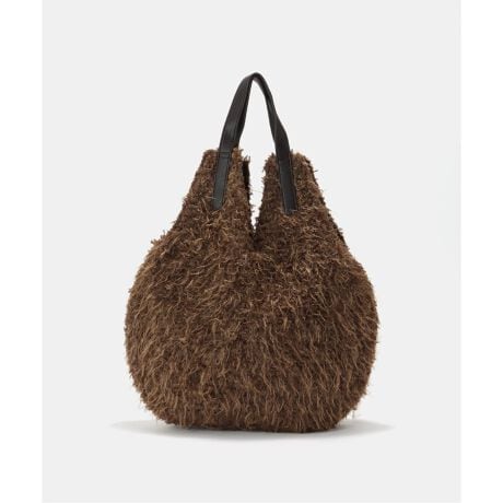 ファンシーヤーンを使用したフェイクファートートバッグ。