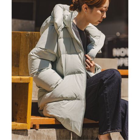 マグネット留めのワイドフードはネックライン外側のジッパーで取り外し可能になっているため、インナーとのバランス感も取りやすい◎。