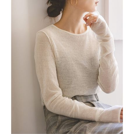 シフォンのような上品な透けが魅力で、スタイリングにさり気ない抜け感を演出してくれる1枚。