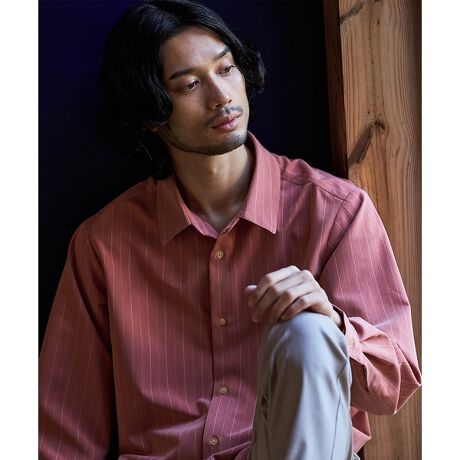 着回しやすいレギュラーカラーを採用したストライプシャツ。細いピッチのストライプはさりげないデザインが印象的。カラーはトレンドのブラウンから汎用性の高い定番色までご用意しました。裾はイン・アウトどちらでも決まり、端境期にはTシャツの織りとして、秋冬はカーディガンやジャケットのインナーにも活躍する万能シャツです。