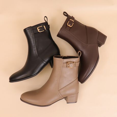 ・アッパーに効かせたステッチラインとさり気ないベルトデザインがアクセントのショートブーツ。