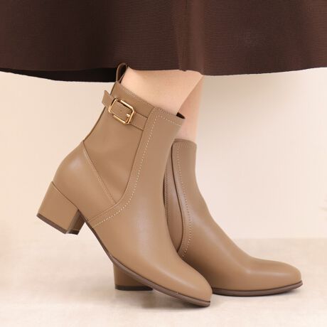 ・アッパーに効かせたステッチラインとさり気ないベルトデザインがアクセントのショートブーツ。