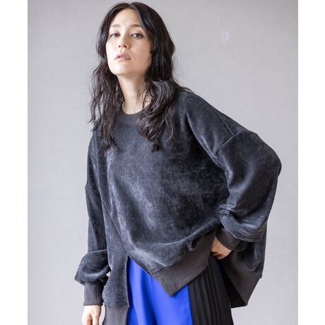 素材について: コーデュロイ風の起毛感とうねのある、中肉のカットソー地