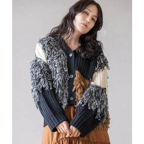 ループフリンジとざっくりとした編地で、秋冬らしいボリューム感を楽しめるチャンキーなニット。