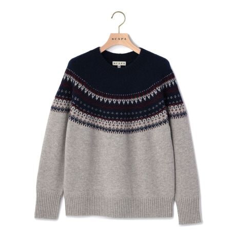 毛にナイロンを織り交ぜた、あたたかな風合いのニットトップス。多彩な幾何学模様をふんだんに配したフェアアイル柄で、主役級の存在感を放ちます。パンツスタイルはもちろん、スカートに合わせると、大人の気品に満ちた装いが完成。シルエットはベーシックなため、長く愛用できるのも魅力です。