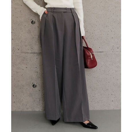 フロントに施したタックがほどよい立体感を生み出し、気になる腰回りや太ももをすっきりカバーしてくれるワイドパンツ。