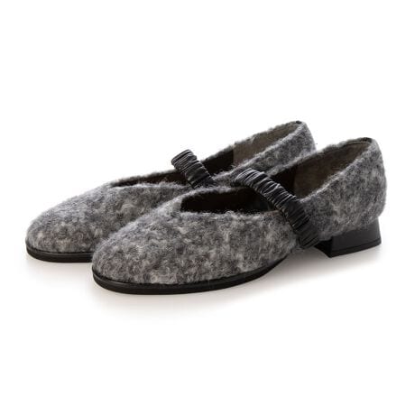 Vカットシャーリングストラップフラットシューズ