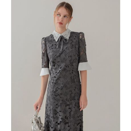 レース素材を全面に使用したクラシカルなワンピースドレス