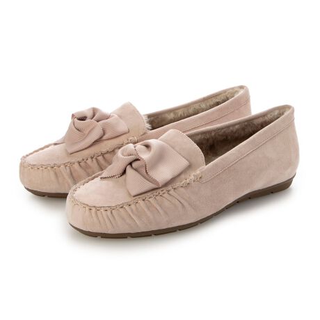 大きめのグログランリボンがチャーミーなモカシンシューズ。