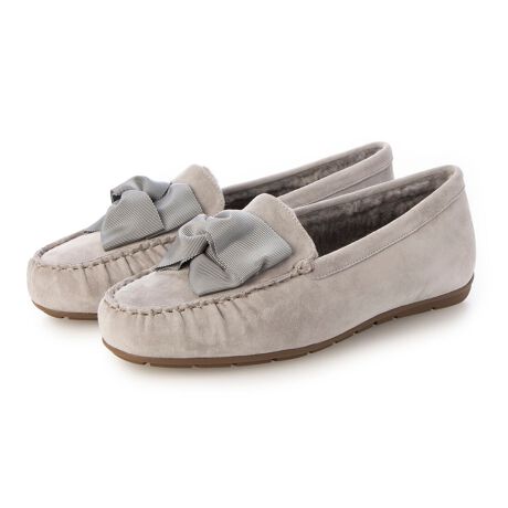 大きめのグログランリボンがチャーミーなモカシンシューズ。