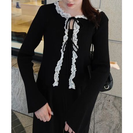 レースフリルリブニットカーディガン