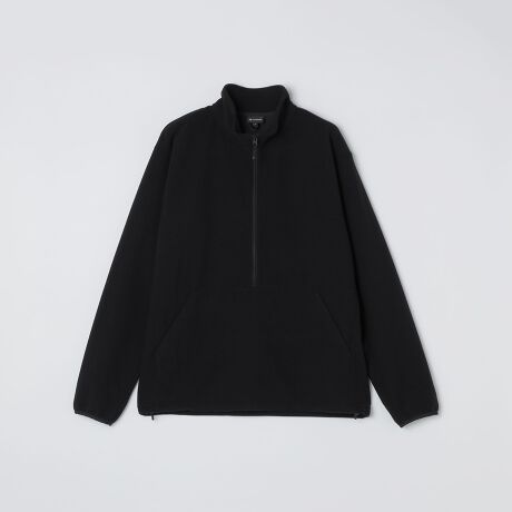 少し長めのハーフジップ仕様で、前身頃にはカンガルーポケットを配置。