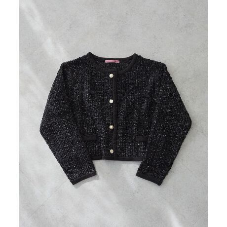 ラメ糸入りのオリジナルツイード生地を使用した、クラシカルなカーディガン。