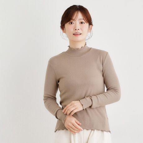 伸縮性のあるリブの編地が体にやさしくフィットし、一日中心地よく着用可能。