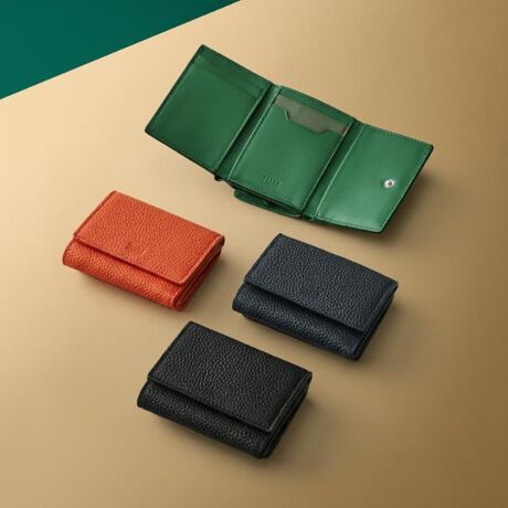 品のあるソフトシュリンクレザーを採用したスタンダードな3つ折りコンパクト財布です。