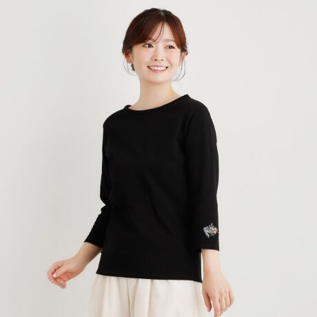デコルテを美しくみせる浅めのボートネックにジャストサイズのフィット感で、カジュアルな素材感ながらもきれいめに着こなせます。