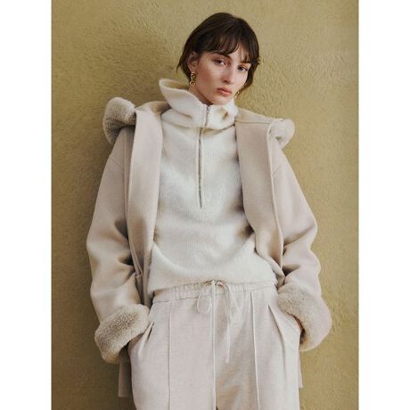 共布ベルトでウエストマークしてワンピライクに着たり、ファーを取り外してシンプルなコートとして楽しんだりと、汎用性の高さも魅力的です。