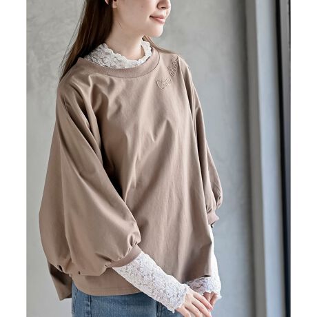 カジュアルなTシャツにレース遣いのインナーが付いたセットアイテム。