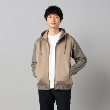 生地とニットのコンビで、通気性があり暖かさもあります。