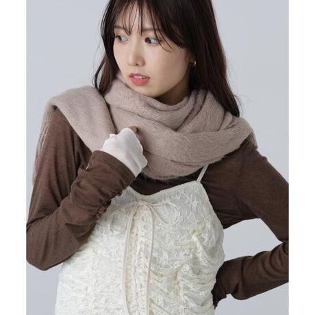 [型番:1315292023]ふんわりとした起毛感が魅力のラッセルストール。柔らかい肌当たりとあたたかな付け心地で寒い季節に活躍してくれます。無地のストールはどんなスタイリングにも取り入れやすくてお勧めです。※モデルの着用画像の場合、光の当たり具合により、実際の色味と異なって見えることがございます。色味は、商品単体の画像をご参照ください。