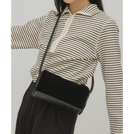 開口部と引手のステッチデザインがポイントのショルダーミニBAG。シーズンムードを盛り上げるベロア素材を使用しました。ショルダーは中でくくって長さ調整が可能です。どんなスタイリングにも合わせやすいデザインにしております。
