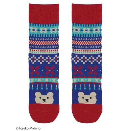 【ソックス】クリエーター“俣野温子”氏がデザインする、甘くなりすぎない大人かわいいテキスタイルとカラーで、くつろぎ時間を楽しく過ごせるパジャマ&ルームウェア・ノルディック柄とクマの組み合わせがかわいいデザイン・つま先からのぞくクマがポイント
