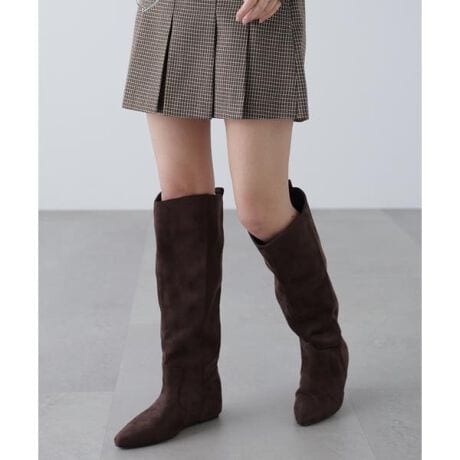[型番:1315293043]筒幅が広めで履きやすいロングブーツ。インソール付きなので履くだけでスタイルアップを狙えます。今年人気のミニ丈ボトムスと相性バツグン。ブラウンはスエード素材、ブラックは合皮素材を使用した2色展開です。※モデルの着用画像の場合、光の当たり具合により、実際の色味と異なって見えることがございます。色味は、商品単体の画像をご参照ください。