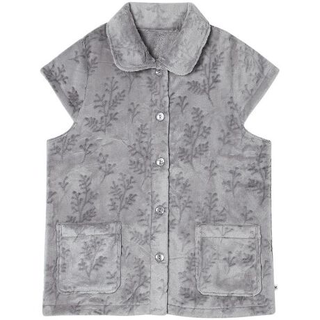 ・本体に、木の実や枝の柄を型押しした毛足の長いフリース素材を使用・肩まですっぽり包みこむデザイン・襟のボタンを留めて折り返すと、首もとまであたたか・ボタンの留めはずしで、2通りの印象に・お見舞いや寒い季節の贈り物にもおすすめ【サイズ詳細】M:身幅55.0cm 着丈66.0cm 身丈70.5cm 肩幅40.0cm 袖丈12.0cmL:身幅59.0cm 着丈66.0cm 身丈71.0cm 肩幅42.0cm 袖丈13.0cm※出来上がり寸法を表示しております※サイズ詳細の寸法には多少の差異がございます