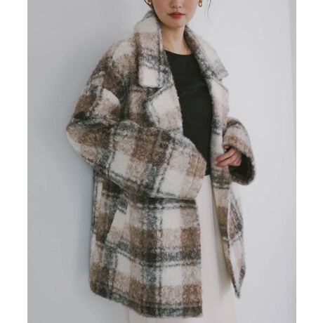 ミドル丈 ボア テーラード コート【無地/チェック柄】Freesia フリージア