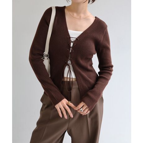 レースアップ リボン 2way リブ ニット トップス Freesia フリージア