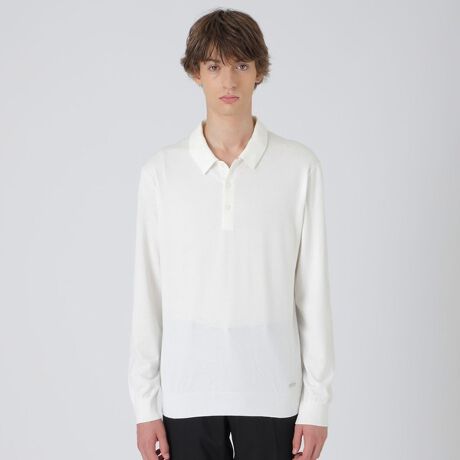 【柔らかで上品見えのする長袖ニットポロシャツ】