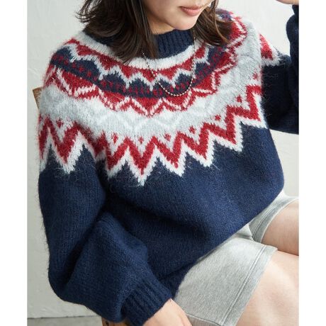 冬の定番柄であるノルディック模様を、ざっくりとしたサイズ感で楽しめるプルオーバーニット。