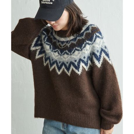 冬の定番柄であるノルディック模様を、ざっくりとしたサイズ感で楽しめるプルオーバーニット。