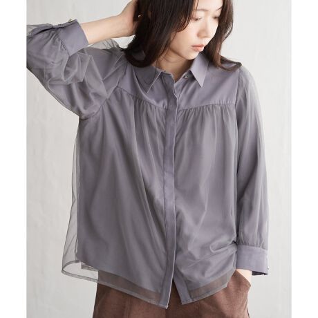 シャツとしてのきちんと感と、チュールの軽やかな透け感が融合し、今のムードにぴったりなレイヤードデザインです。