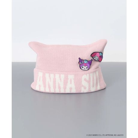ニット本体にジャカードで入ったANNA SUIのロゴと、ネコ耳になる可愛らしいシルエットがポイントです。